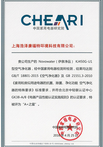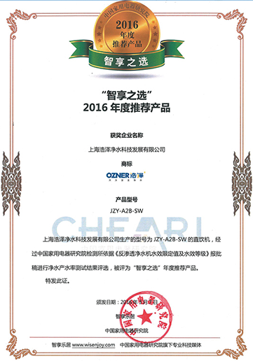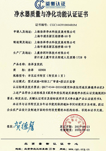中國凈水器十大品牌證書